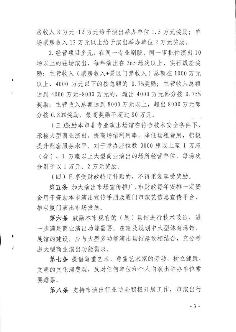 廈門(mén)市(shì)文(wén)化(huà)和(hé)∞γ÷旅遊局 廈門(mén)市(shì)财政局&♦>關于印發《廈門(mén)市(shì)繁榮商業(yè)演出市(shì)場(chǎng)實施辦₽§π法》的(de)通(tōng)知(zhī)